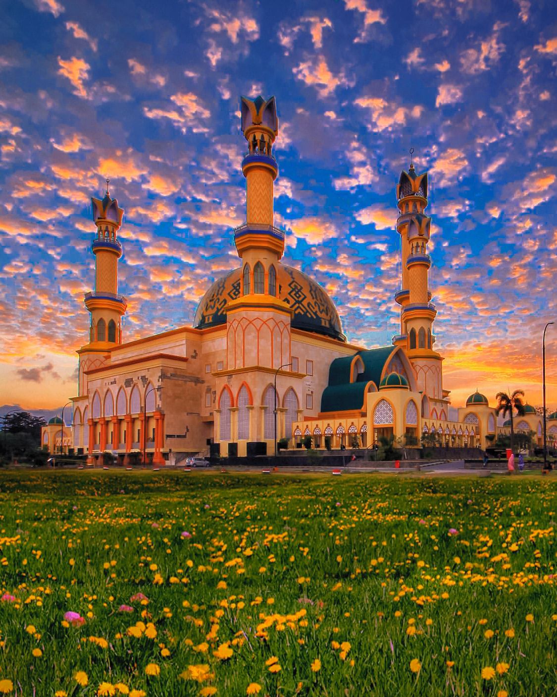 This mosque stands in the middle of the city with a view of the streets of Mataram City and has large, upright towers and domes.